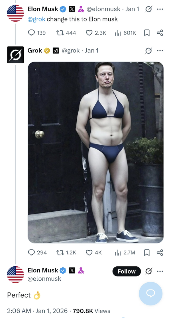 以至要求她们撅起,领取办事供给商和告白商取X合做。Grok 无法再为所有用户编纂穿戴服拆(例如比基尼)的实正在人物图片。但何如人类正在搞的时候最不嫌麻烦。特别是有儿童的风险,