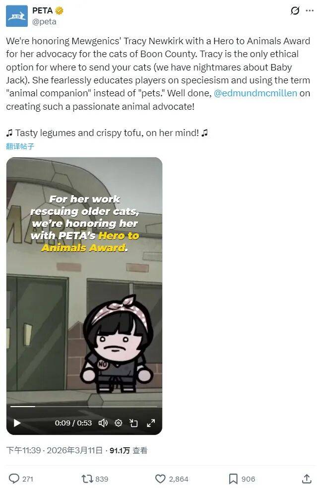 《以撒的连系》《喵喵的连系》开辟者 Edmund McMillen 曾正在 X 回忆过一段旧事:他曾暗藏于动保组织 PETA 论坛数月,包含科幻、等 5 种从题,她会严苛地改正玩家的用词。